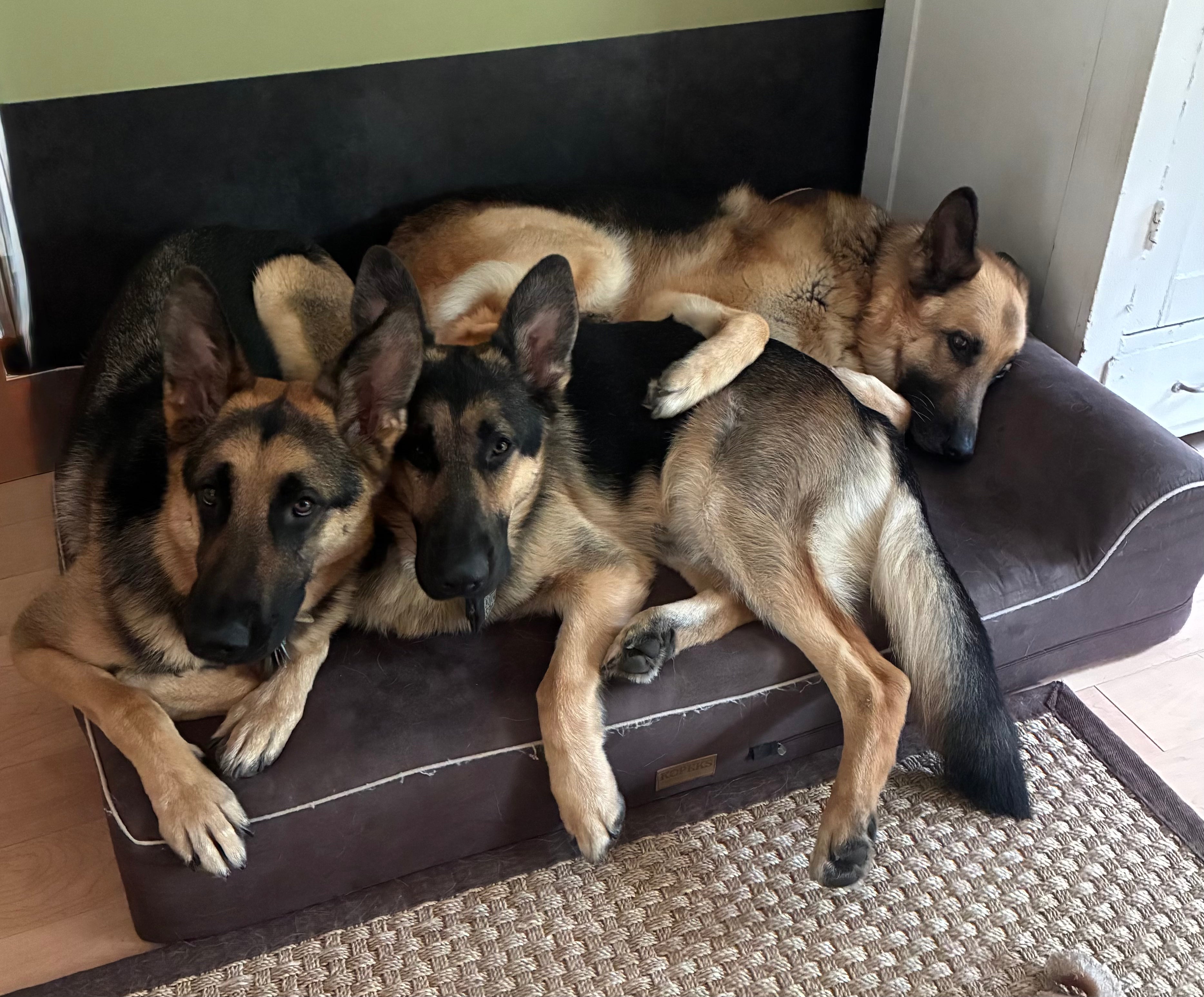 Three Dog Candle Company came about from our love of making candles -- plus our need to feed three large and seemingly always hungry dogs. Each candle is hand-pawed in our kitchen in the Catskill Mountains of New York, and the quality is tightly controlled by three very good German Shepherds. We hope you love our scents as well as our ever-growing list of dog friends they are named after.